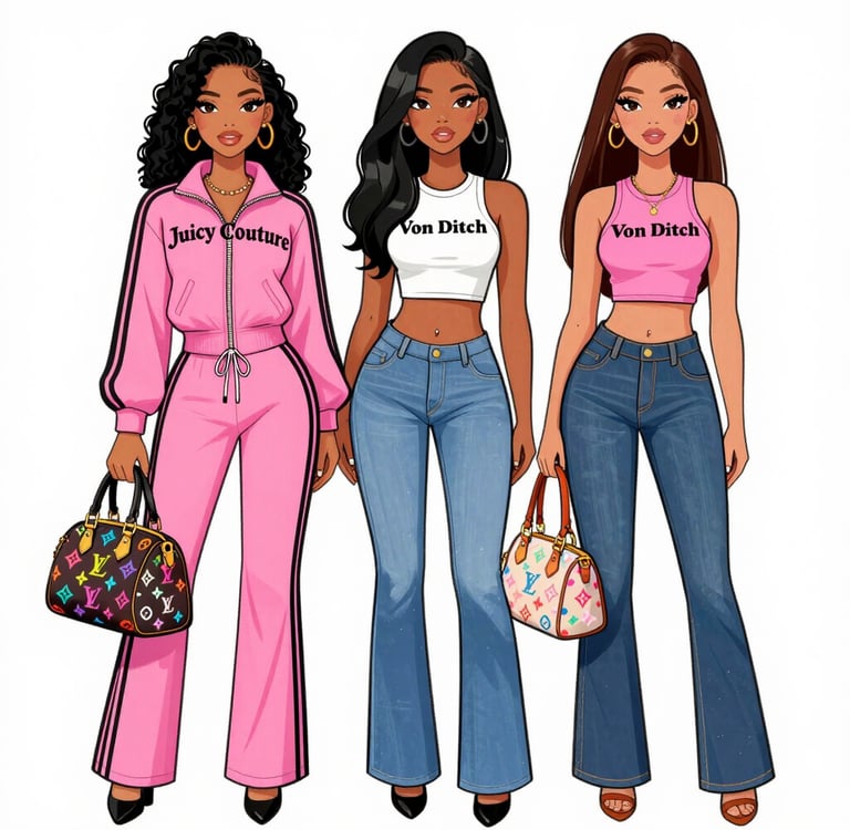 As a millenial I initially found myself rather confused at the thought of my high school fashion being resurrected from the dead and returning into our stores and closets. I thought we had left the Juicy Couture tracksuits, the flared lowrise jeans, and the glittery shirts behind for good - after having swapped them out for minimalist designs, and earthy tones. I remember hearing in the media about how awfully tacky the loud designs of the early 2000's were and I understood the implication of having to avoid wearing them at all costs. Everyone was eager to fit in with the new, "more chic" minimalist movement. And now, some 20 years later, those same loud designs - once labelled tacky and a thing of the past - are suddenly the newest trend?